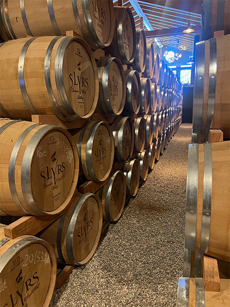 The whole place smelled divine. They are actually doing barrel maturation right in the room so you are truly immersed in the process. After wandering through the facility you end up in a very welcoming tasting room that has a fantastic view. Looking one way you looked over barrels and looking the other you saw the majestic outside views.